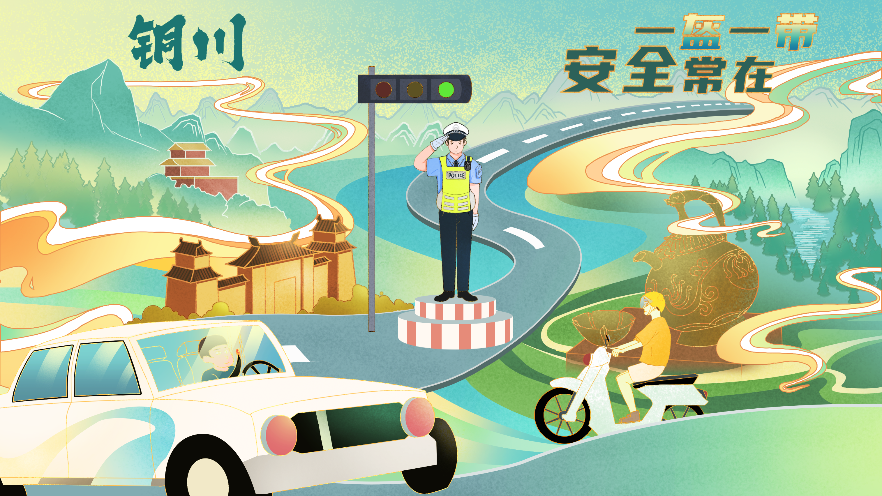 铜川公安交警祝您行车路上一路平安!祝您和家人新春快乐!阖家幸福!