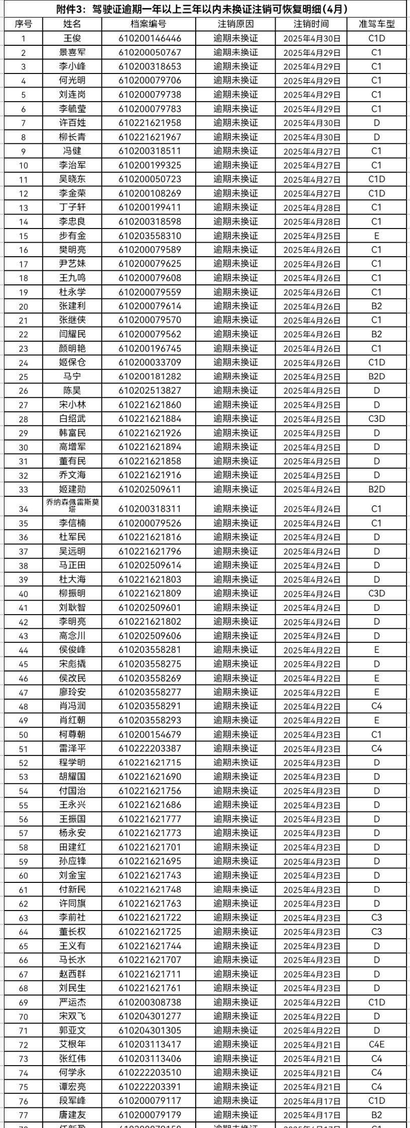 3、“逾期一年以上三年以内未换证”驾驶证注销可恢复明细