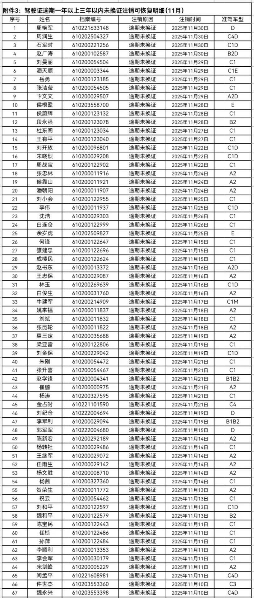 3、“逾期一年以上三年以内未换证”驾驶证注销可恢复明细
