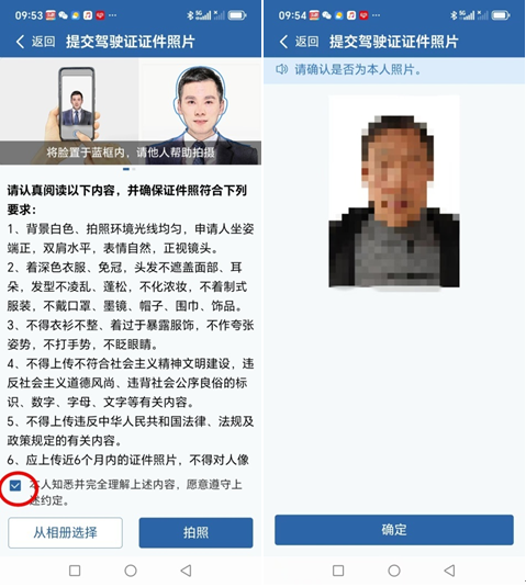 照片提交。如果系统提示需要照片,按照要求上传。注意:系统提交的照片主要用于人像对比核验,通常会自动提取你身份证照片库里的照片来制作纸质驾驶证,但身份证办理超过一年的需现场拍照或提交本人相册里半年内的白底彩色证件照。(注意:提交的证件照不可穿着浅色上衣、制式服装,不得过度美颜修图、佩戴深色眼镜)