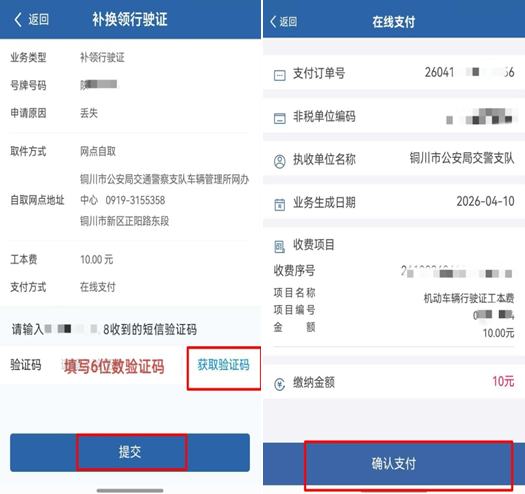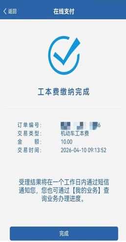 步骤三:完成支付。点击获取验证码并正确输入,在线支付完成后,业务申请步骤既全部完成。