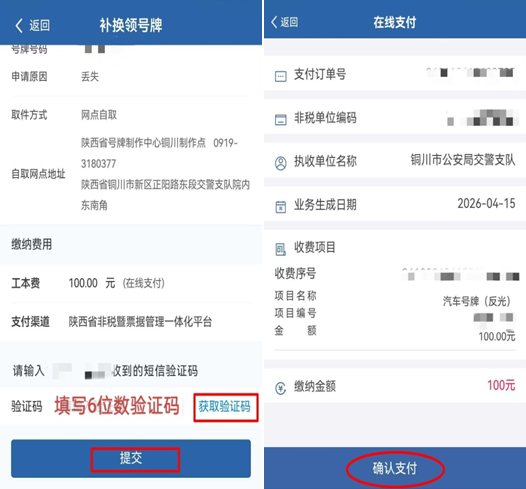 步骤三:完成支付。点击获取验证码并正确输入,在线支付完成后,业务申请步骤既全部完成。
