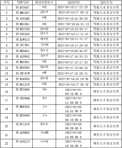 近日,铜川公安交警共曝光交通违法135起,高风险运输企业2家。其中未按规定使用安全带交通违法35起;大型货车在高速公路不按规定车道行驶34起;驾车接打电话交通违法18起;酒驾17起;逾期未审验、未换证11起;驾驶机动车违反道路交通信号灯通行的交通违法5起;未戴安全头盔15起。