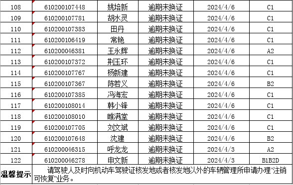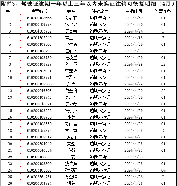 3、“逾期一年以上三年以内未换证”驾驶证注销可恢复明细