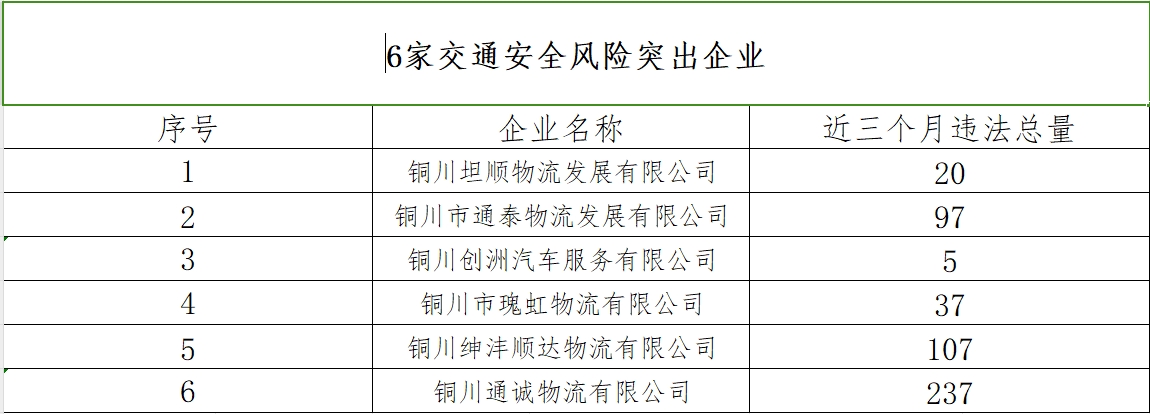 近日,铜川公安交警集中曝光6家全市交通安全风险突出企业,进一步警示提醒相关企业加强隐患问题排查治理,有效预防和减少道路交通事故,全力助推预防交通事故“减量控大”工作。
